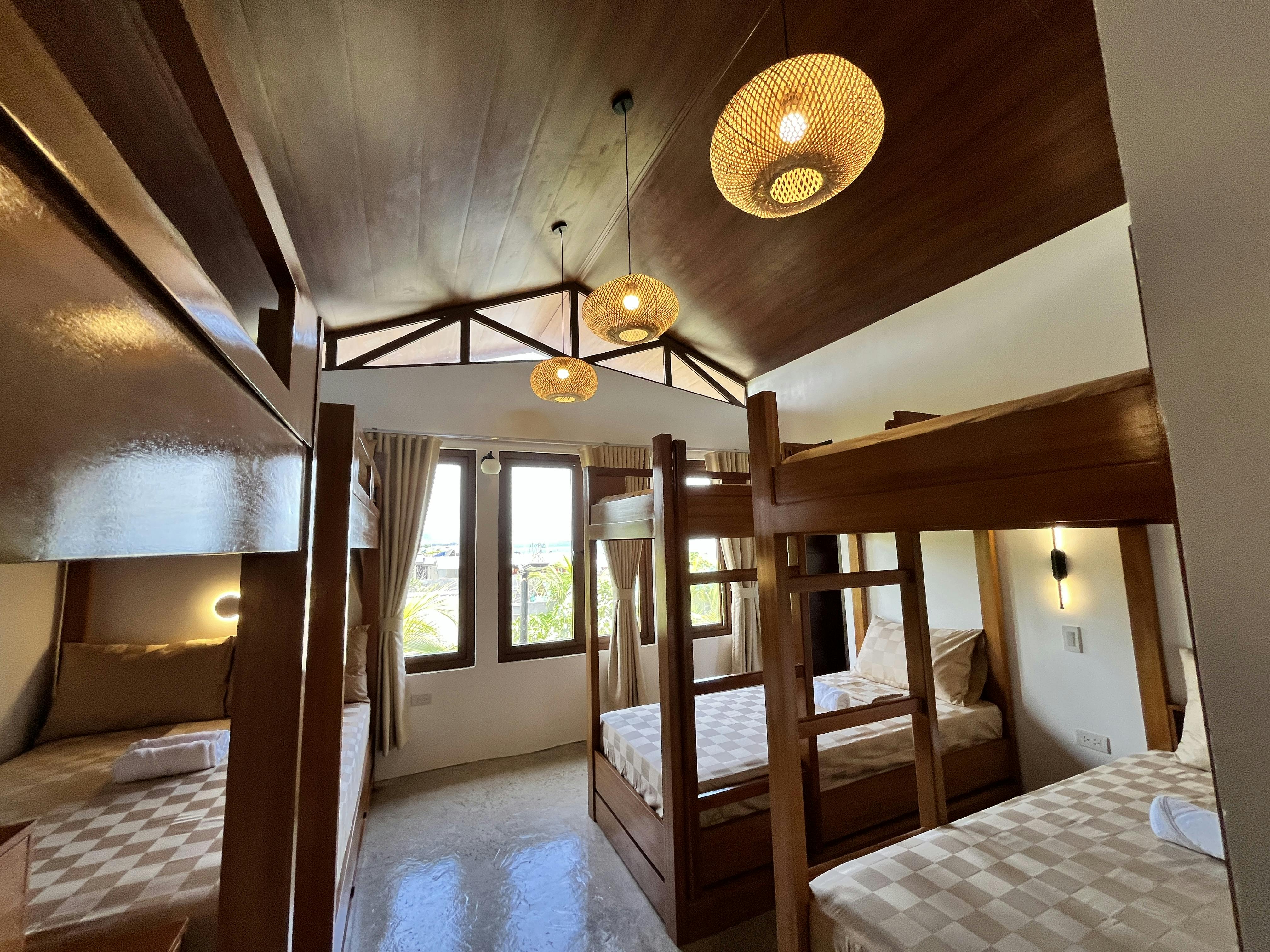Garden Royal Experience elevated comfort in our newest villa-style suite. The Garden Royal features a spacious living area, two floors of thoughtfully designed interiors, and can accommodate up to 12 guests—perfect for families or groups seeking a luxurious retreat surrounded by nature.Sunset Royal The Sunset Royal is an air-conditioned room with Wi-Fi, a water heater, a mini table, a wardrobe, one queen-size bed, and a single pull-out bed. Located on the second floor with occupancy for 3 guests, it offers a private bathroom with towels, toiletries, and breakfast included. With direct views of the sunset and beach, it’s the perfect space to relax and take in the stunning coastal scenery.Gardenview Deluxe Located on the second floor with scenic views of the beach and pool, the Gardenview Deluxe is perfect for large families or groups. This air-conditioned room features a private balcony, high-speed WiFi, a double-size bed, a double-deck bed, and three semi-double quarter beds—comfortably fitting up to 10 guests. A private bathroom is available outside the room on the ground floor, complete with fresh towels, toiletries, and a complimentary breakfast.Family Deluxe Perfect for families or groups, our Family Deluxe Room is on the first floor—easy to access and super convenient. It has a queen-size bed, a bunk bed with a pull-out, plus all the essentials like air-conditioning, fast WiFi, a water heater, and a wardrobe. You'll also have your own bathroom with fresh towels, toiletries, and breakfast included. It’s a comfy space that sleeps up to 4 guestsPremier Deluxe Our Premier Deluxe Room offers a comfortable and convenient stay on the first floor, ideal for couples or small groups. It features a queen-size bed with a single pull-out, perfect for up to 3 guests. The room comes with air-conditioning, fast WiFi, a private bathroom with fresh towels and toiletries, and a complimentary breakfast to start your day right.Skyview Premier The Skyview Premier offers the same cozy comfort as our Premier Deluxe, but with a view you won’t want to miss. Located on the second floor, this room features a queen-size bed with a single pull-out, ideal for up to 3 guests. Enjoy air-conditioning, high-speed WiFi, a private bathroom with fresh towels and toiletries, and a complimentary breakfast—all with beautiful views of the beach and sunset just outside your window.Standard Room Located on the first floor, our Standard Room is an air-conditioned space featuring a queen-sized double-decker bed and a single pull-out—ideal for groups of up to 5 guests. It has convenient access to a shared bathroom located just outside the room and includes towels, toiletries, and complimentary breakfast for a comfortable and budget-friendly stay.Sunrise Royal The Sunrise Royal is an air-conditioned room with Wi-Fi, a water heater, a mini table, a wardrobe, one queen-size bed, and a single pull-out bed. Located on the second floor, the room offers a private bathroom with towels, toiletries, and breakfast included. Enjoy the peaceful sunrise views, along with glimpses of the beach and sunset, making it the perfect space for relaxation and comfort.